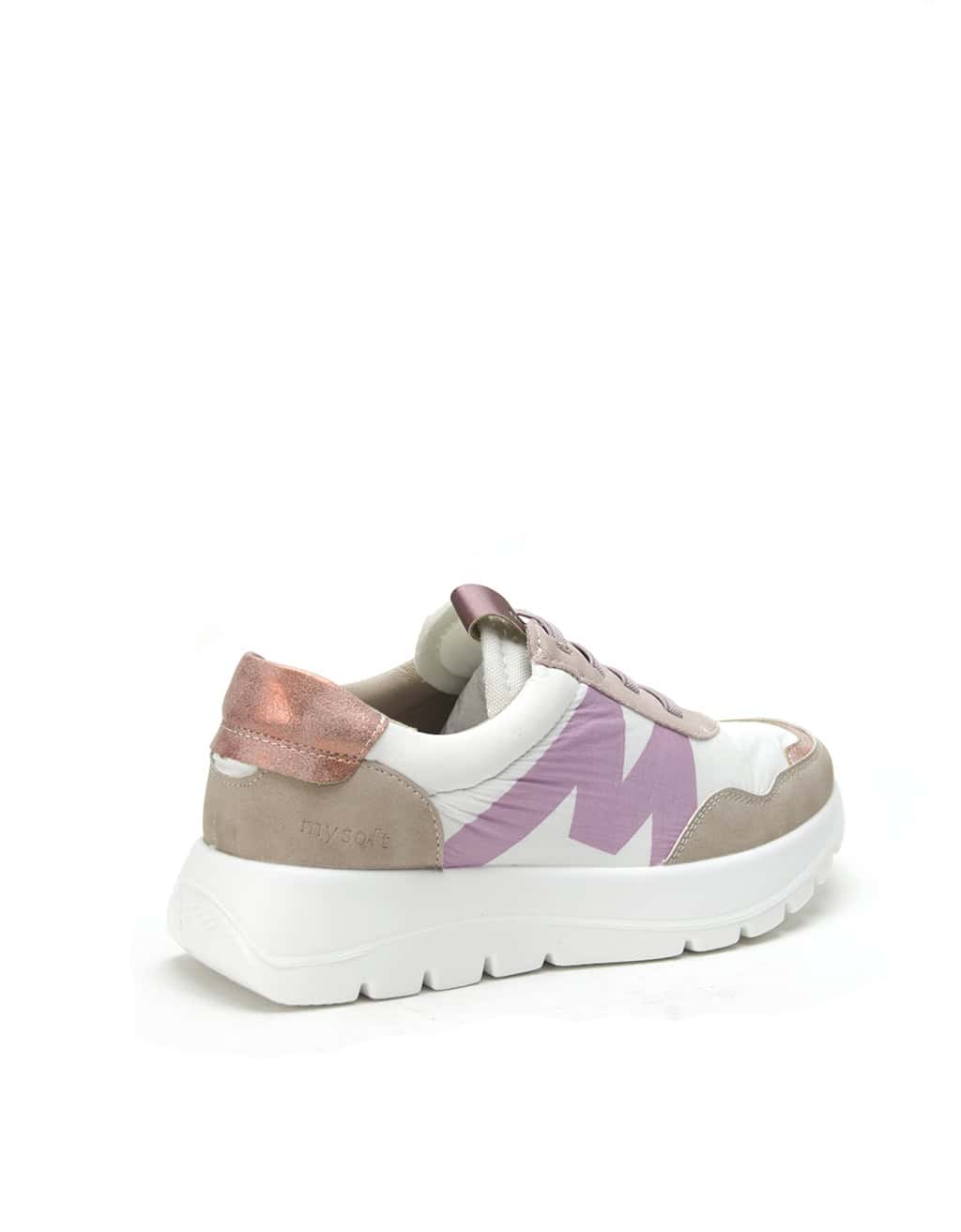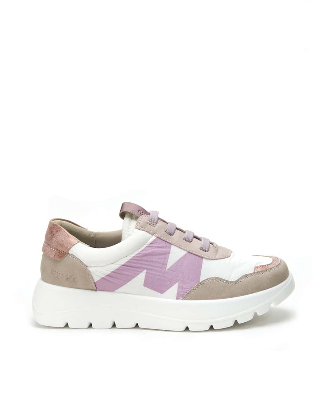 Zapato de la marca Mysoft para mujer, realizado mediante paneles de material textil con detalles combinados. Plantilla extraíble de “SoftGel”, con nanopartículas de coloide que garantizan la comodidad desde la primera puesta además del memory foam para amortiguar y suavizar los impactos. Cierre cordones elásticos. Piso deportivo con volumen y suela de goma antideslizante.