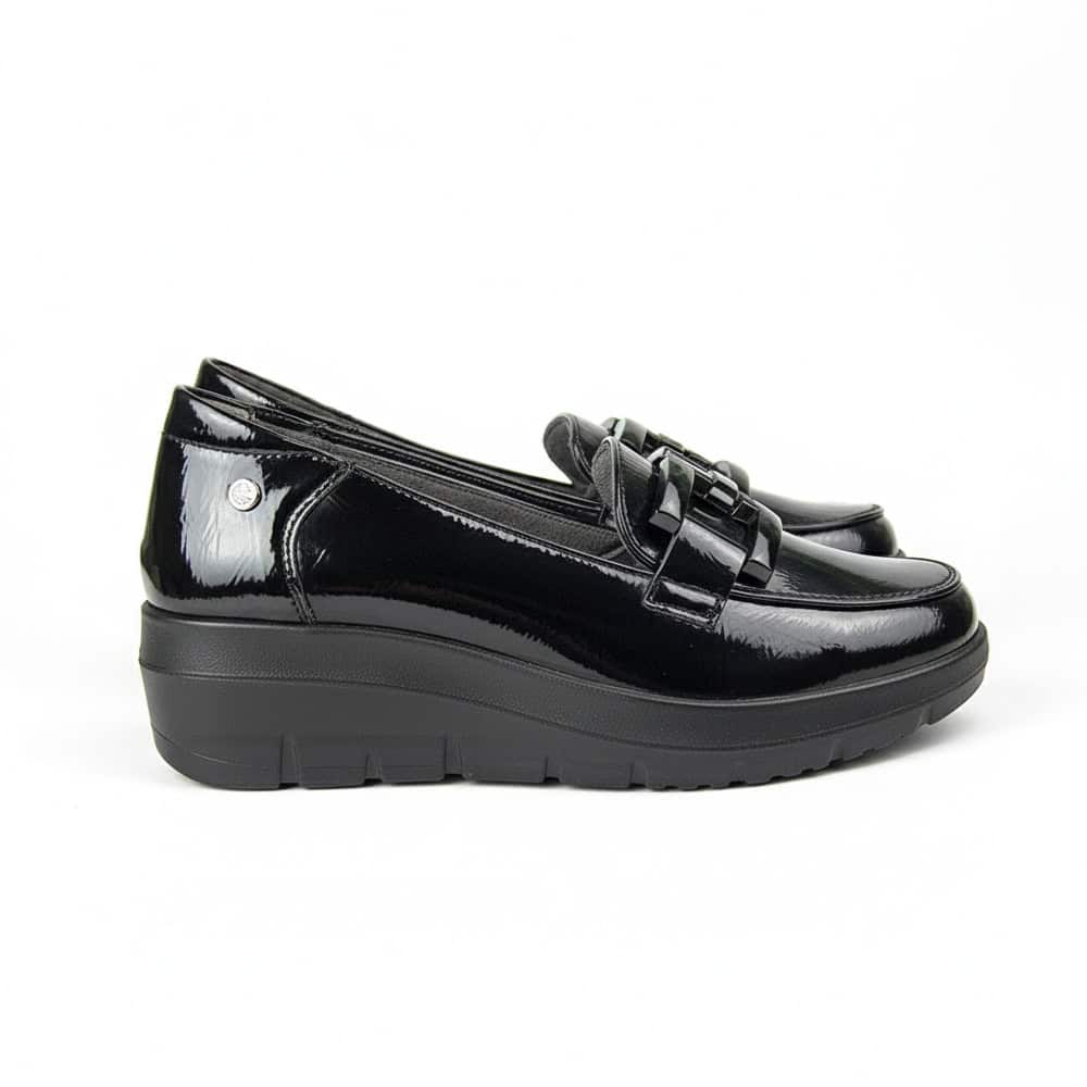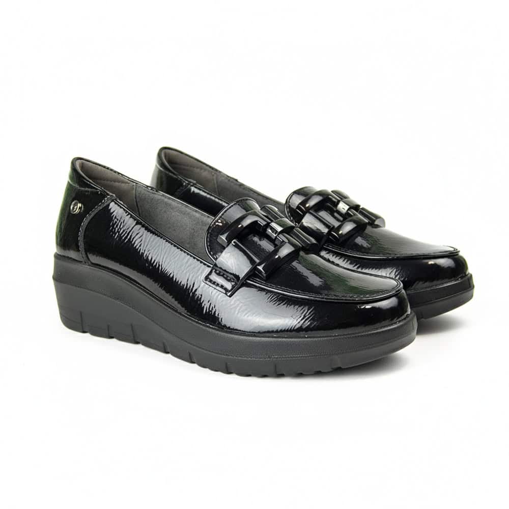 Zapato Mujer Mysoft 25M585 es un mocasín elegante que combina sofisticación y comodidad. Confeccionado en material PU Leather con efecto charol, este modelo es ideal tanto para looks formales como para outfits casual chic. Su diseño moderno y versátil lo convierte en un calzado imprescindible para cualquier ocasión.