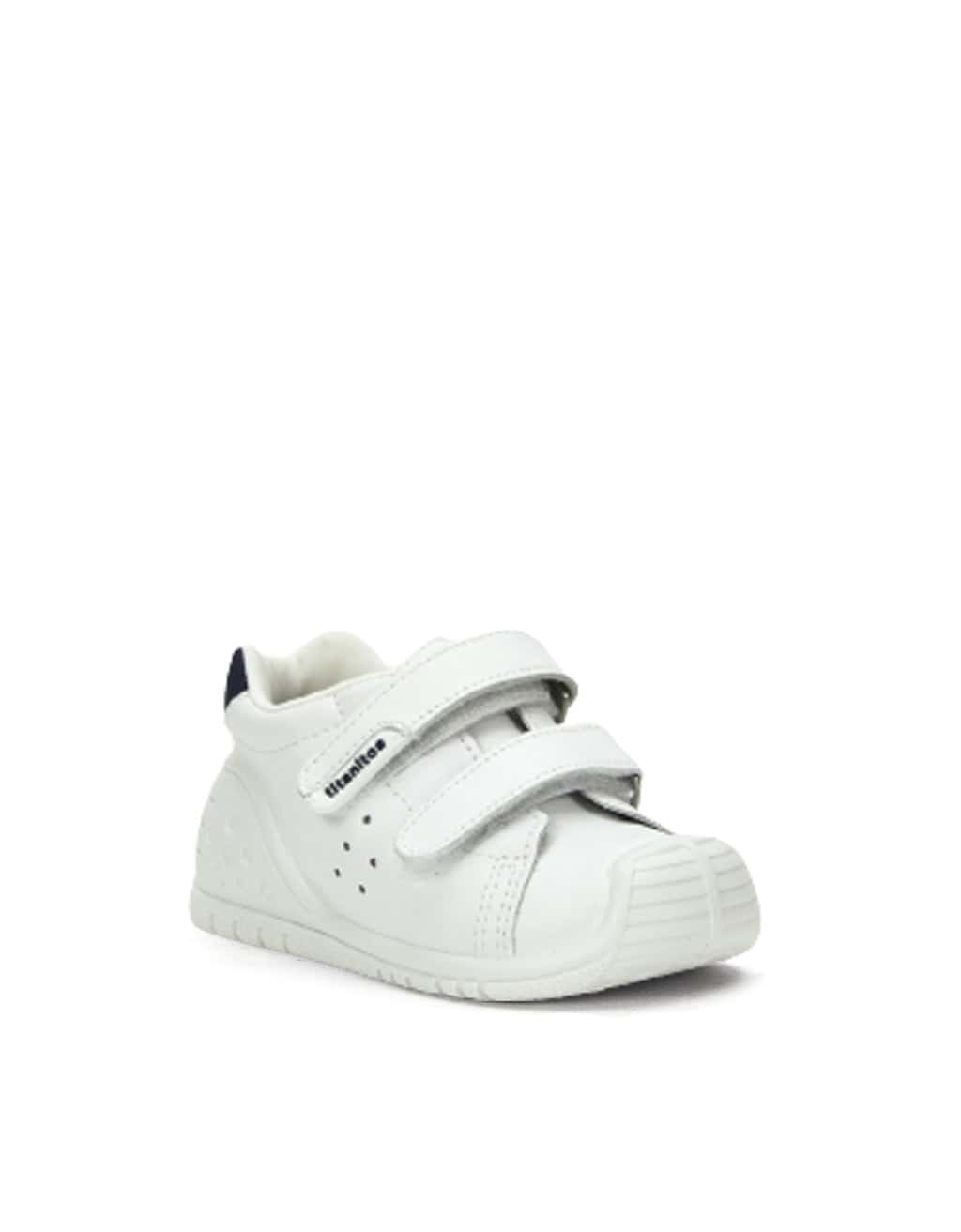 Zapato para niño de la marca Titanitos, modelo X680 KEVIN. Zapato fabricado en piel de primera calidad lavable y ultrarresistente con cierre de velcro reforzado, plantilla perfumada y antibacteriana y suela soft para un piso más blandito. Esta zapatilla cuenta con dos de nuestras características exclusivas titanitos, Bubble Absorber y Movelastic que facilita la adaptación del zapato a su forma natural de caminar y absorbe el impacto de la pisada. Hecho en España.