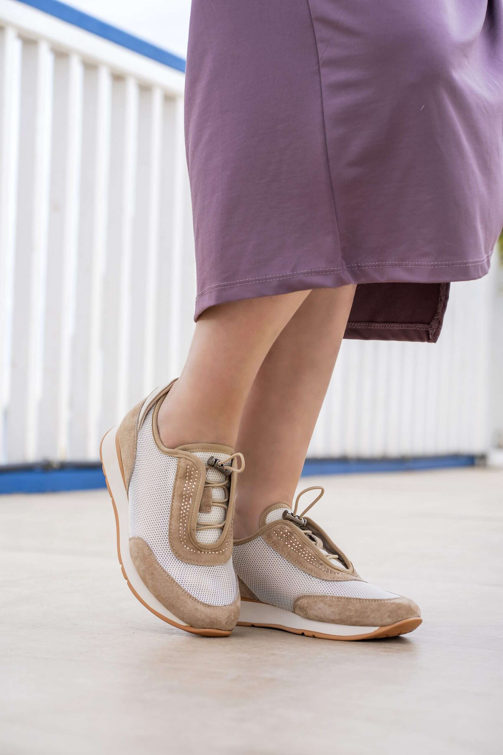 Zapato cómodo de la marca Cervera Inspired para mujer, fabricada en serraje de primera calidad combinado con rejilla para un look mas fresco. Plantilla extraíble anatómica acolchada en micro fibra con sensación de piel 100% transpirable. Cierre de cordonera central elástica con pulsador para mayor ajuste.