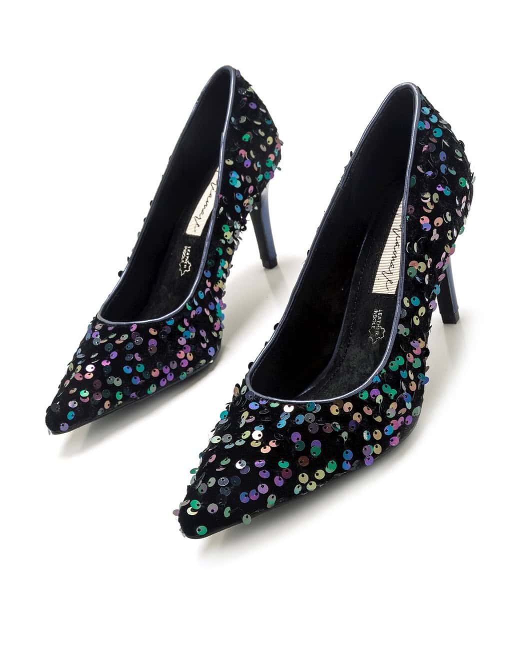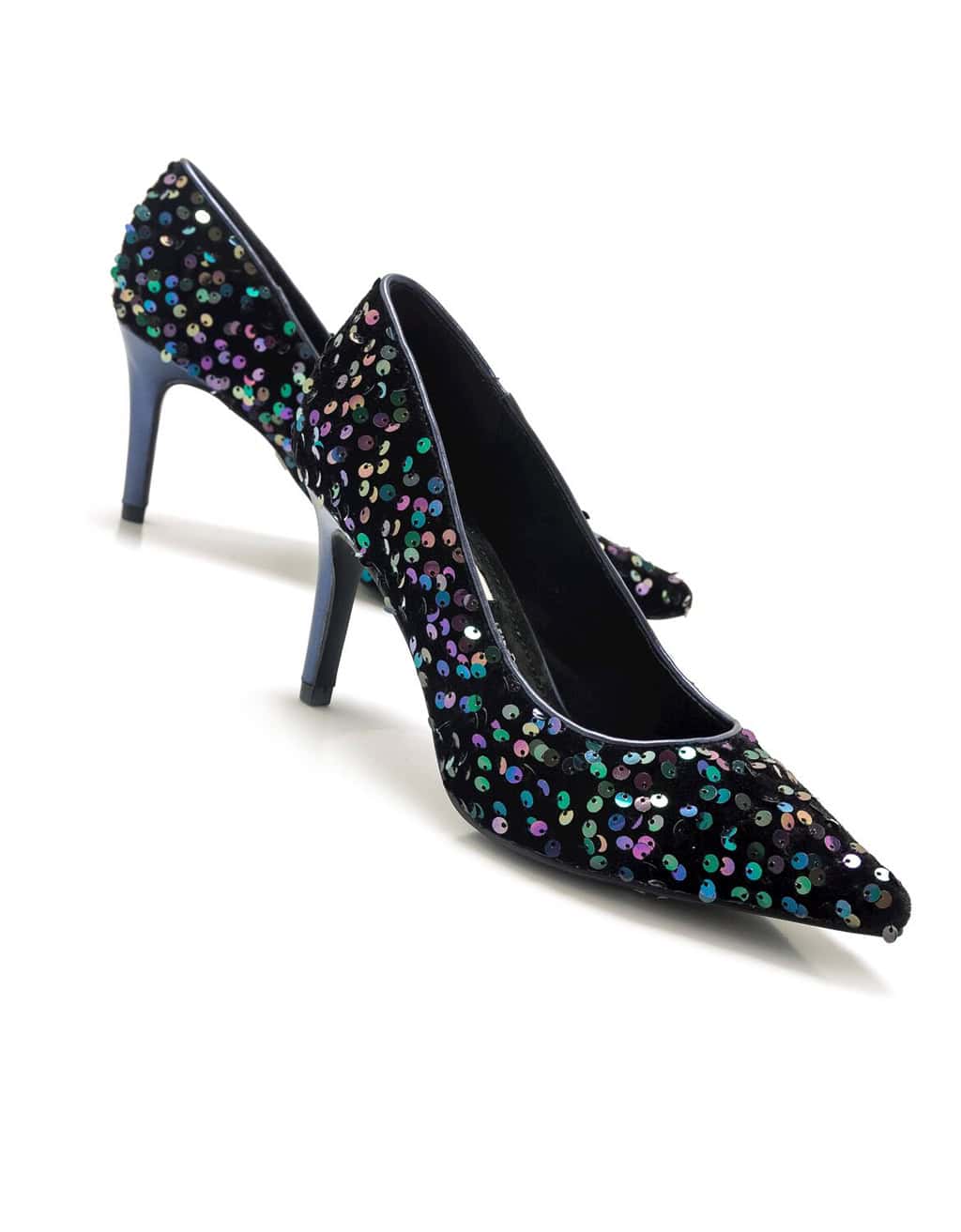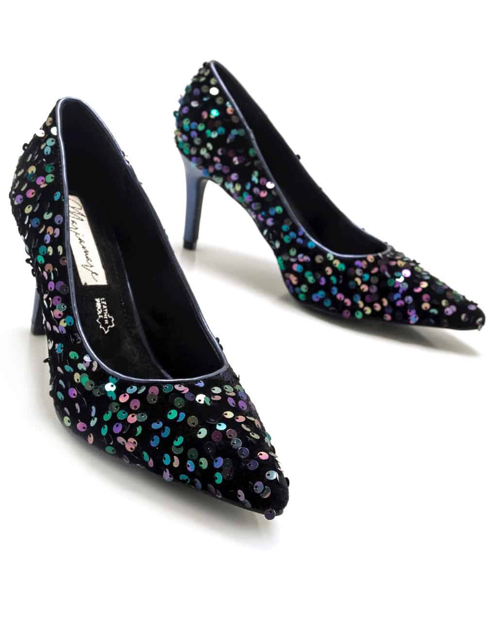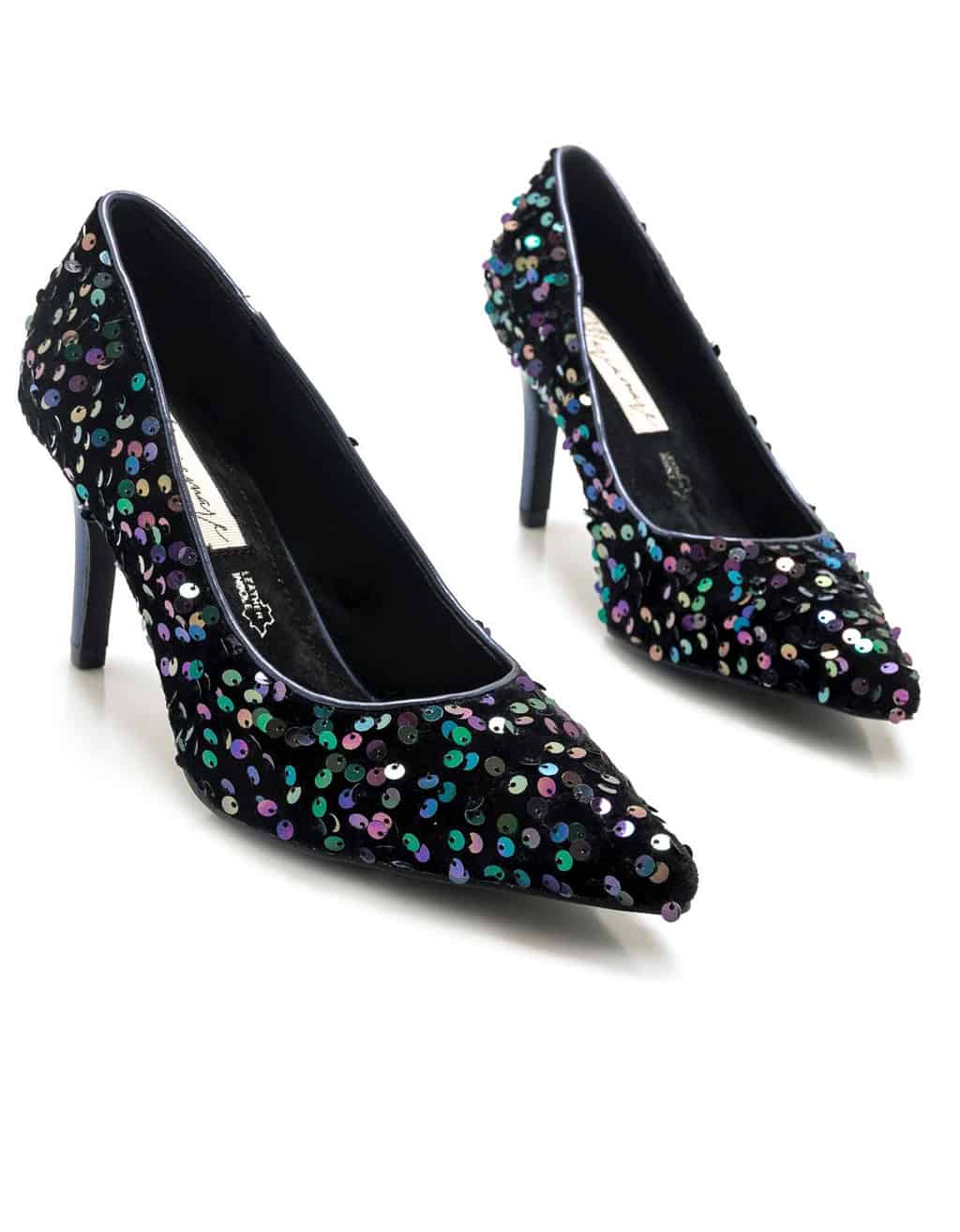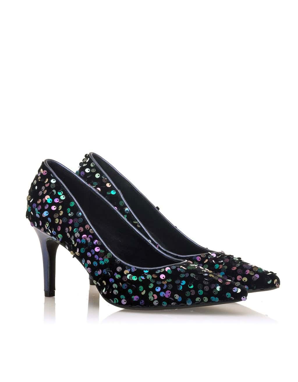 Zapato con tacon para mujer, de la marca Mariamare. Diseñado con detalles de lentejuelas multicolor de punta afilada con tacón de color azul marino. Añádelo a tus looks de eventos para aportarles un toque extra de sofisticación y elegancia. Altura del tacon: 4 cm.