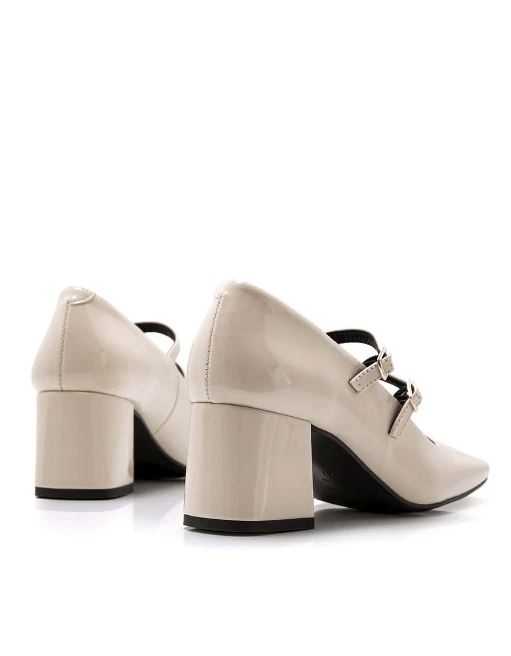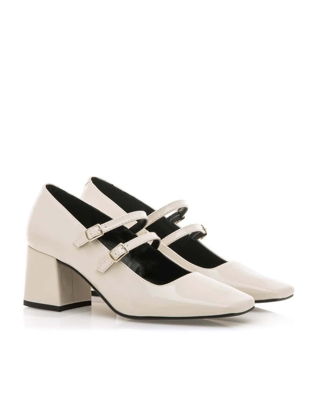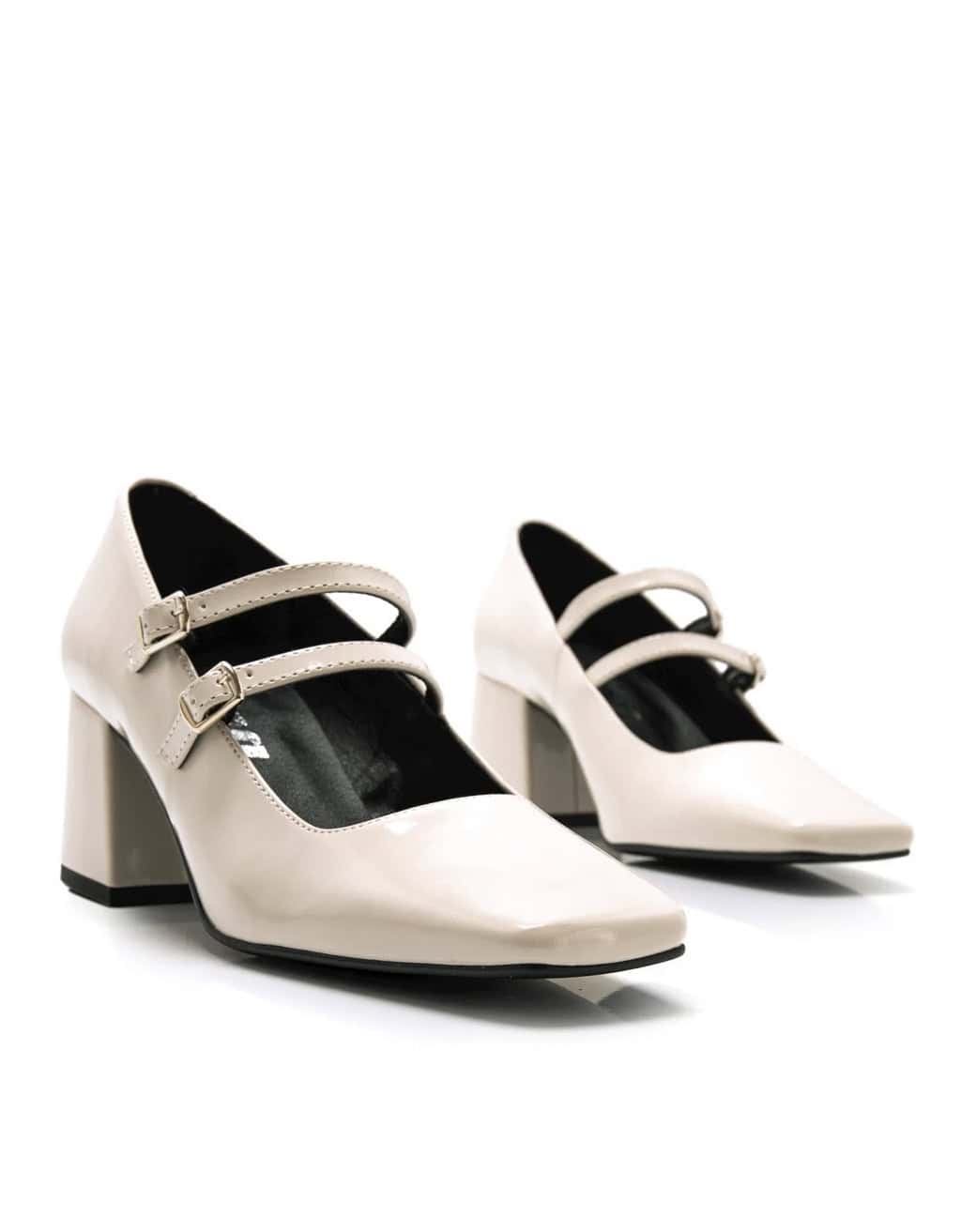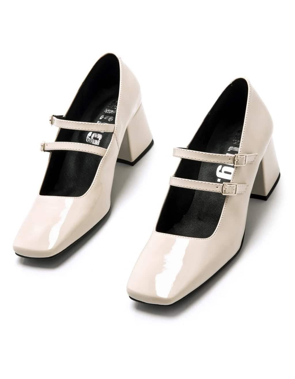 Zapatos de salón con tacón cuadrado y punta cuadrada. Están hechos en charol y tienen un diseño clásico y elegante. Suela de goma para mayor agarre. El tacón mide aproximadamente 6 cm de altura y la punta del zapato es cuadrada y ancha.